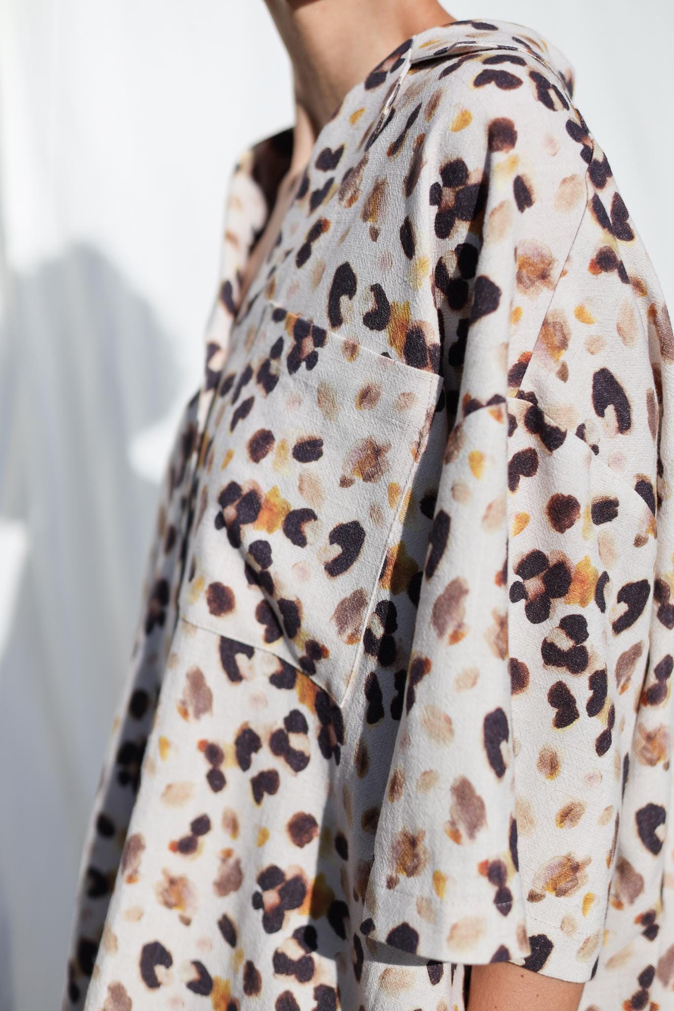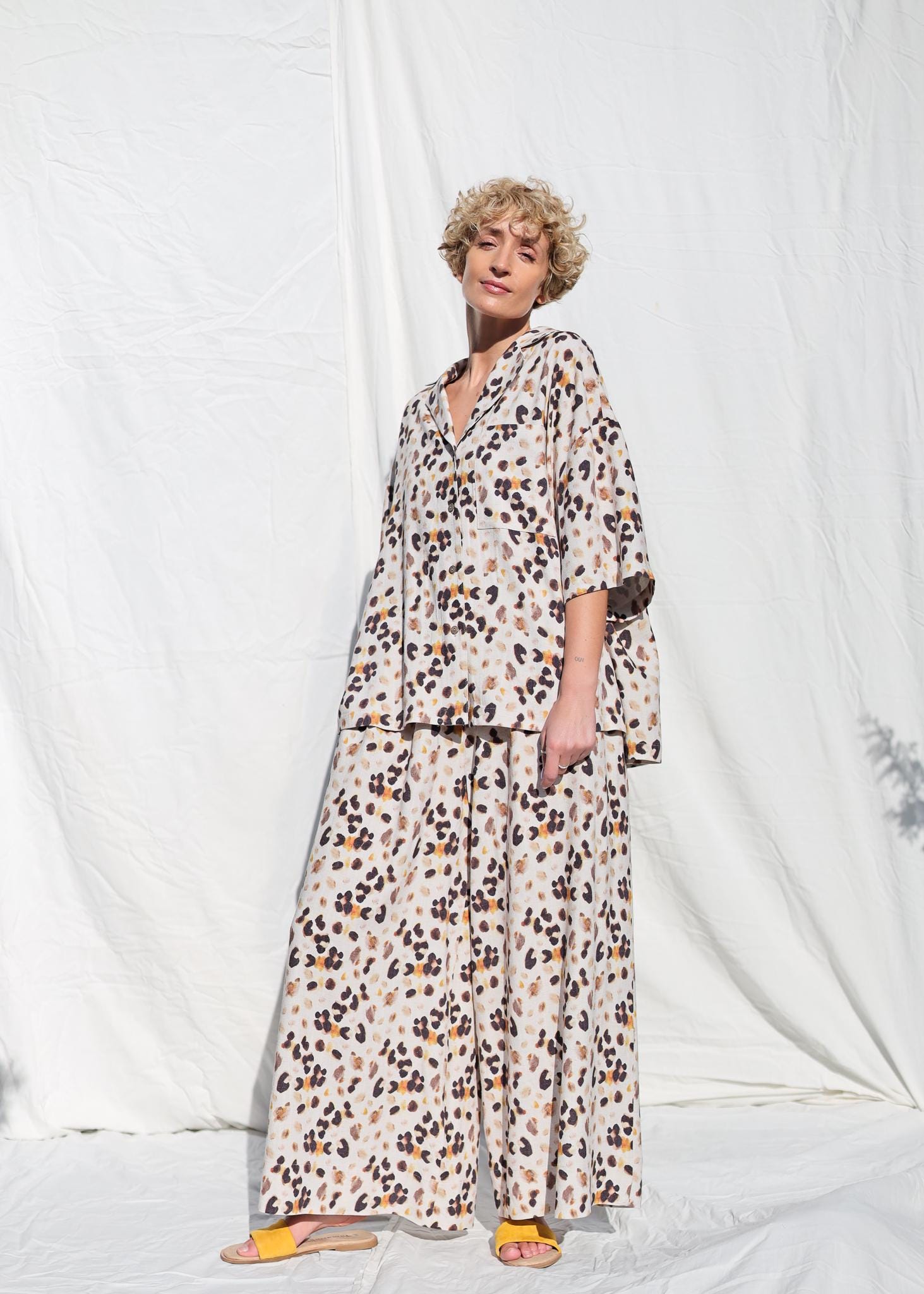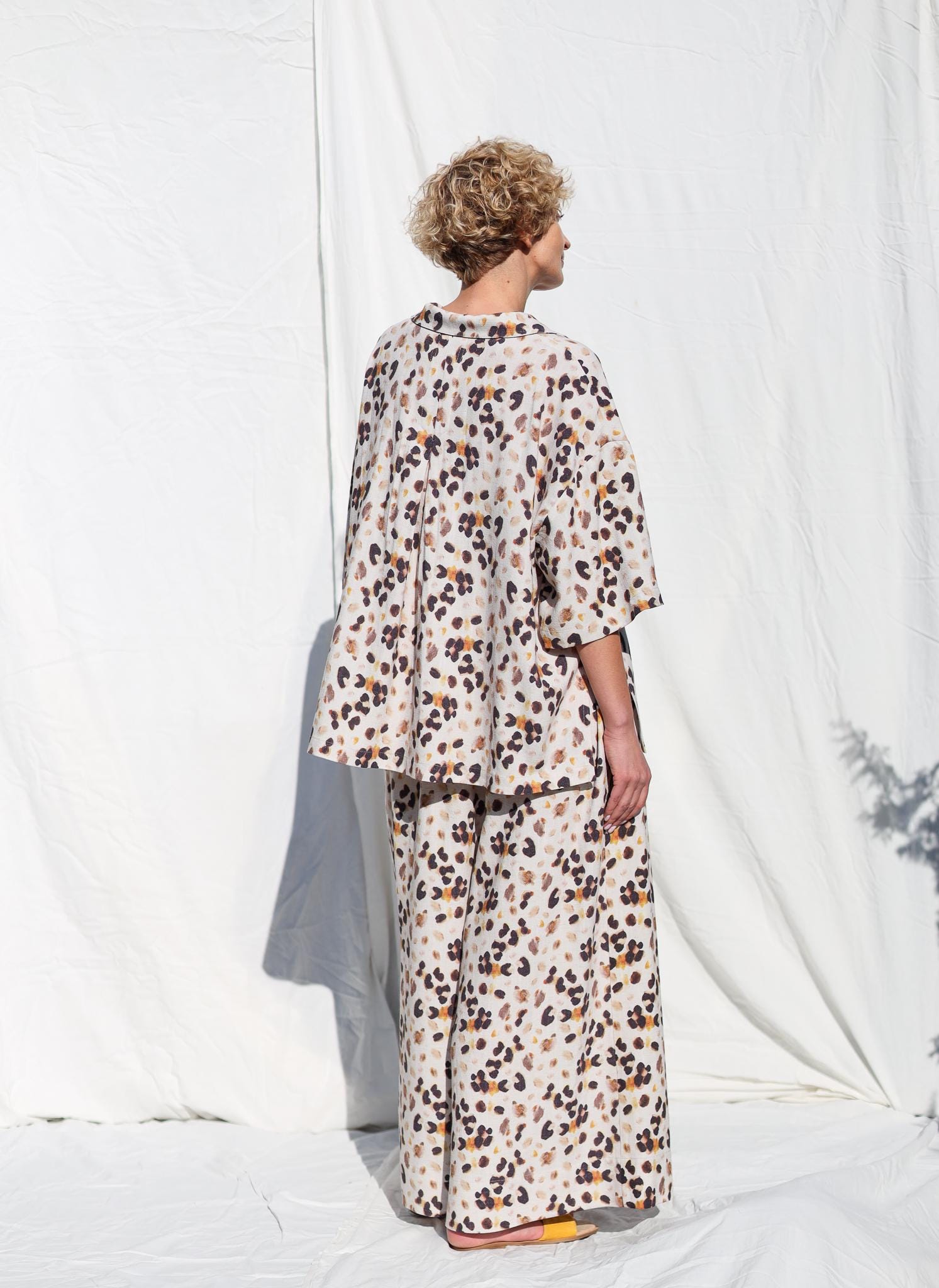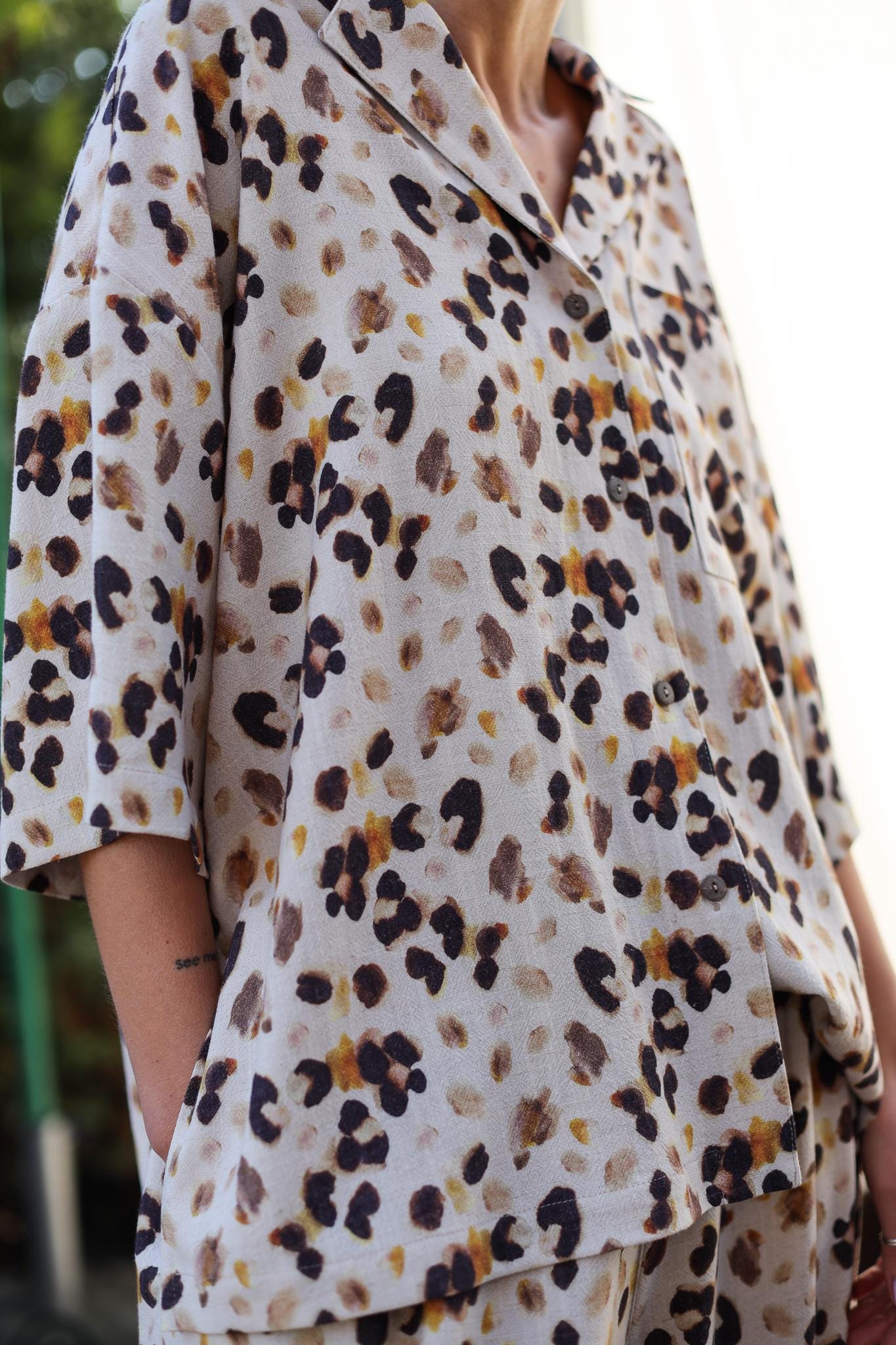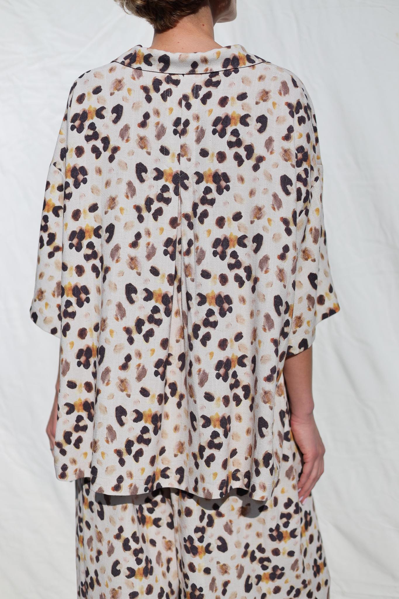 Oversize Animal Print Viscose Linen Blend Oversized Shirt