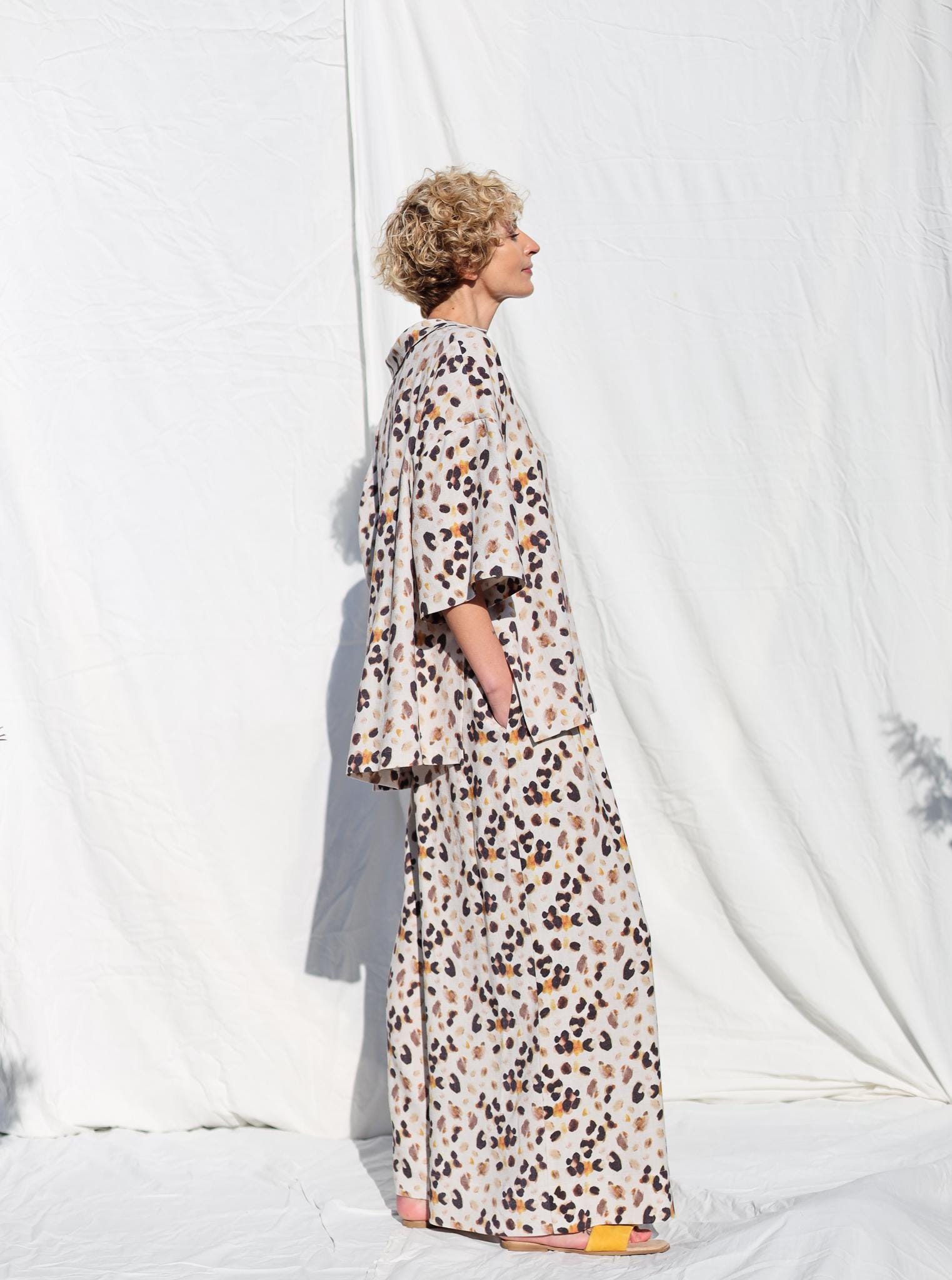 Made in a versatile, soft and pleasant to the skin linen and viscose blend fabric. Elegant and feminine look, perfect for a special occasion or to wear it every day. Styling tip: wear it with our matching print palazzo trousers.