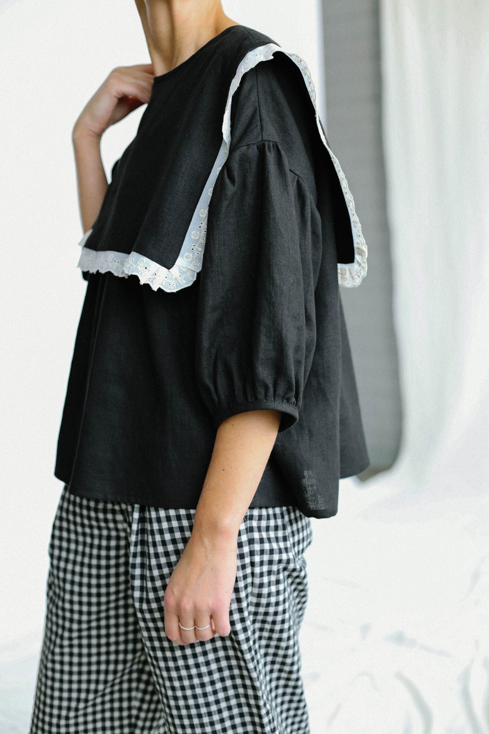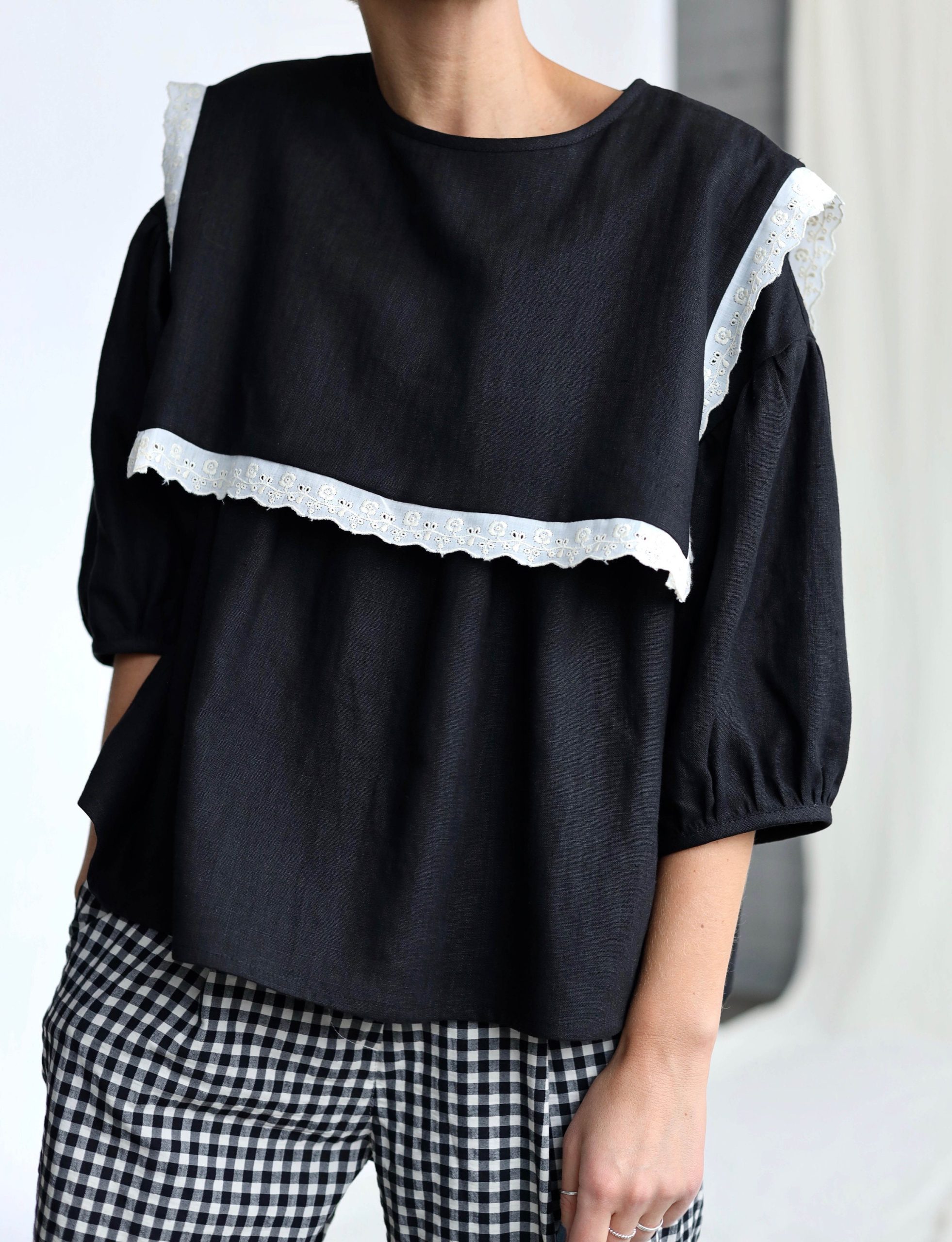Oversized Large Collar Black Linen Blouse Amelia Offon