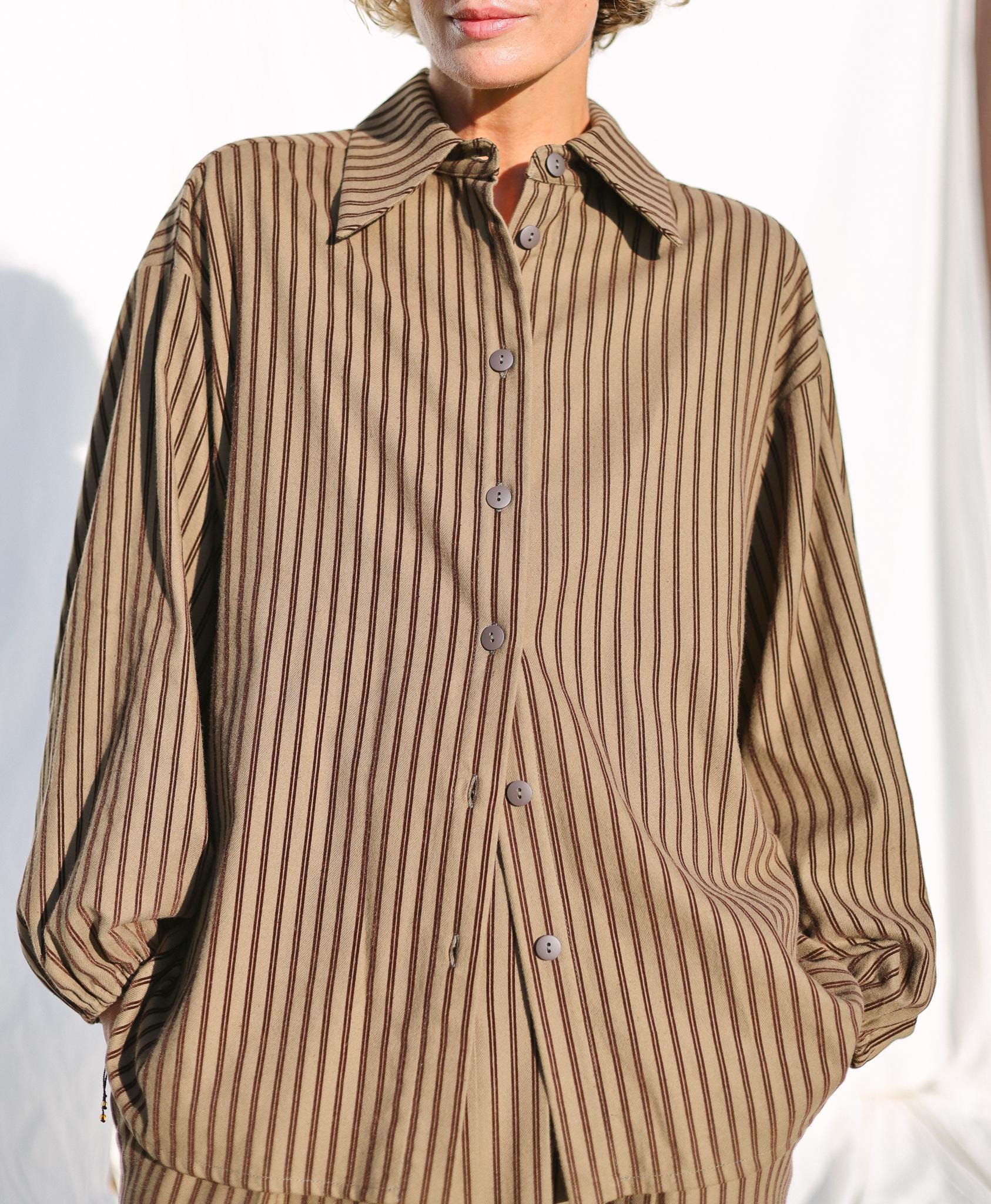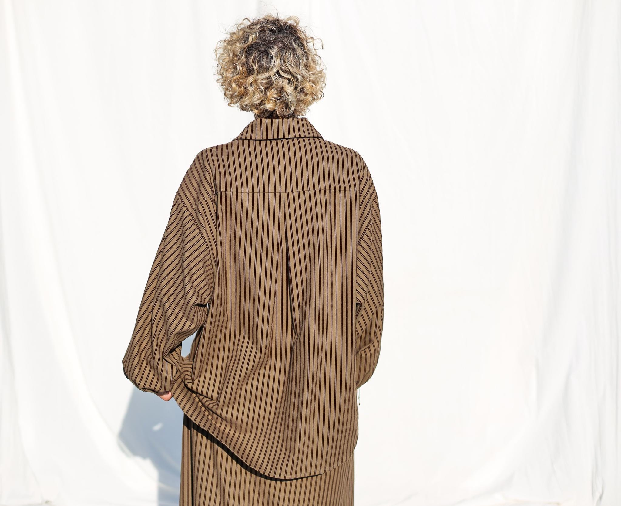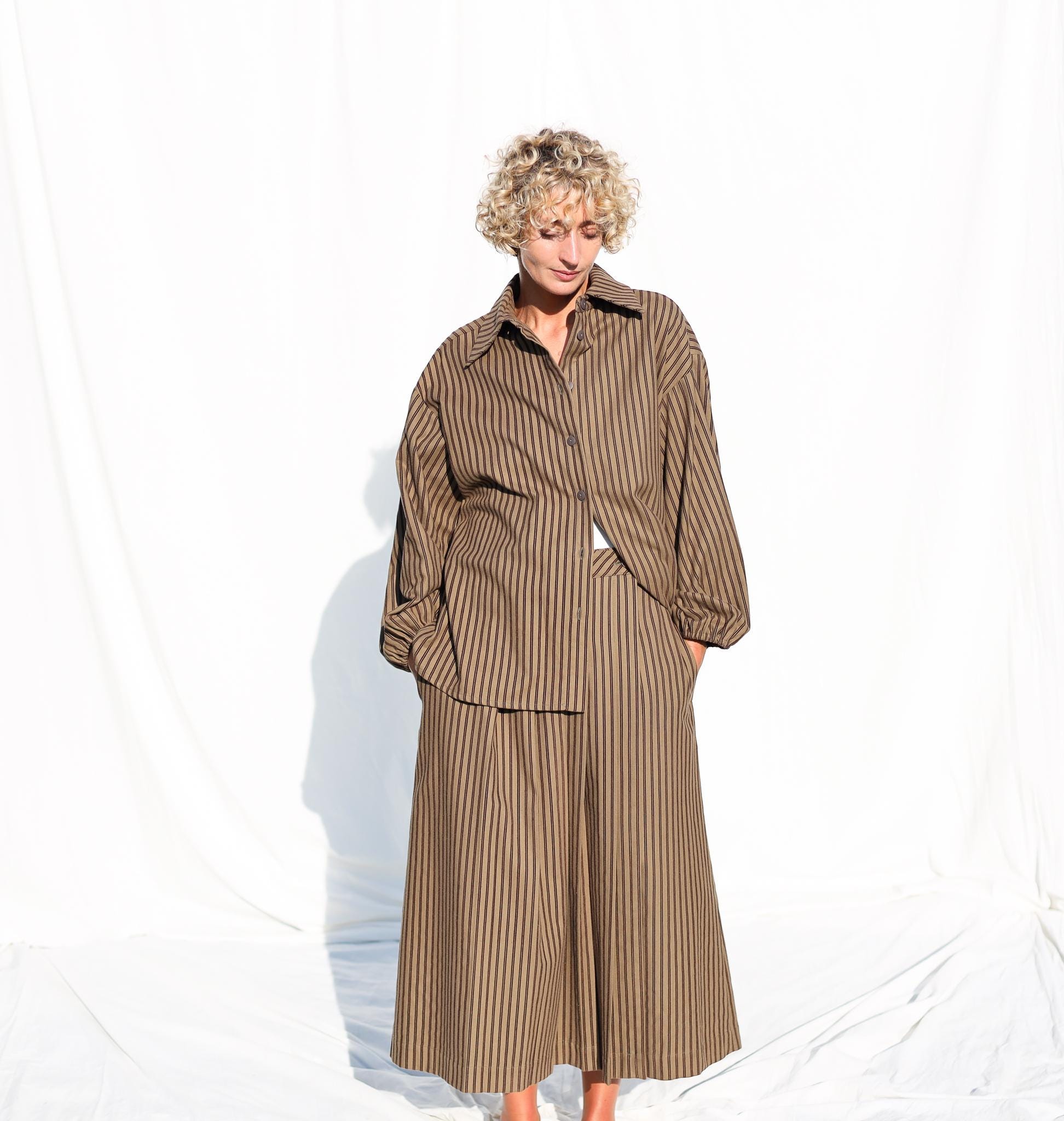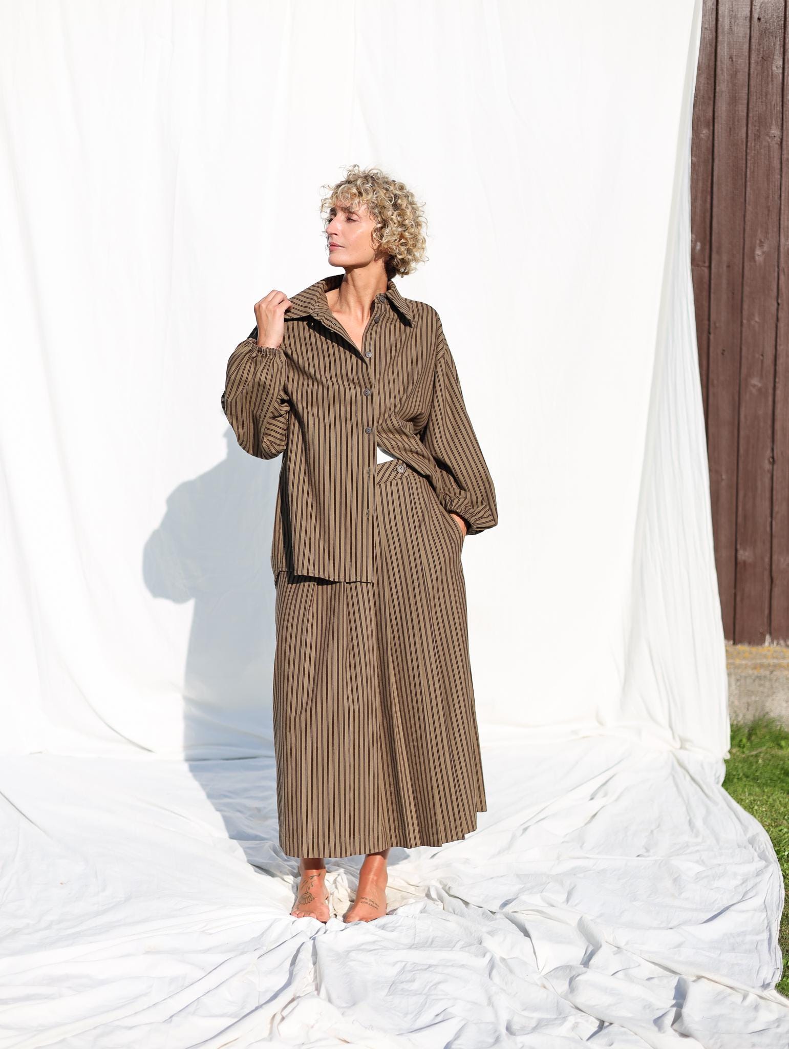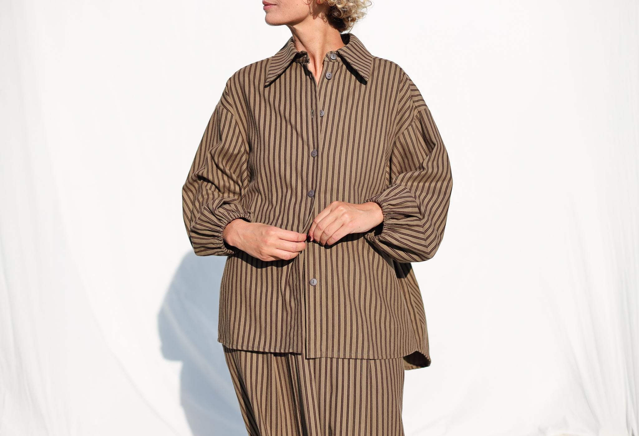 Made in exclusive velvety stripes cotton fabric. Comfortable fit, elegant and feminine look. Versatile style – perfect for special occasion or to wear every day with your favorite pair of trousers, high-waisted jeans, or simply create a perfect look it with our matching pleated skirt.