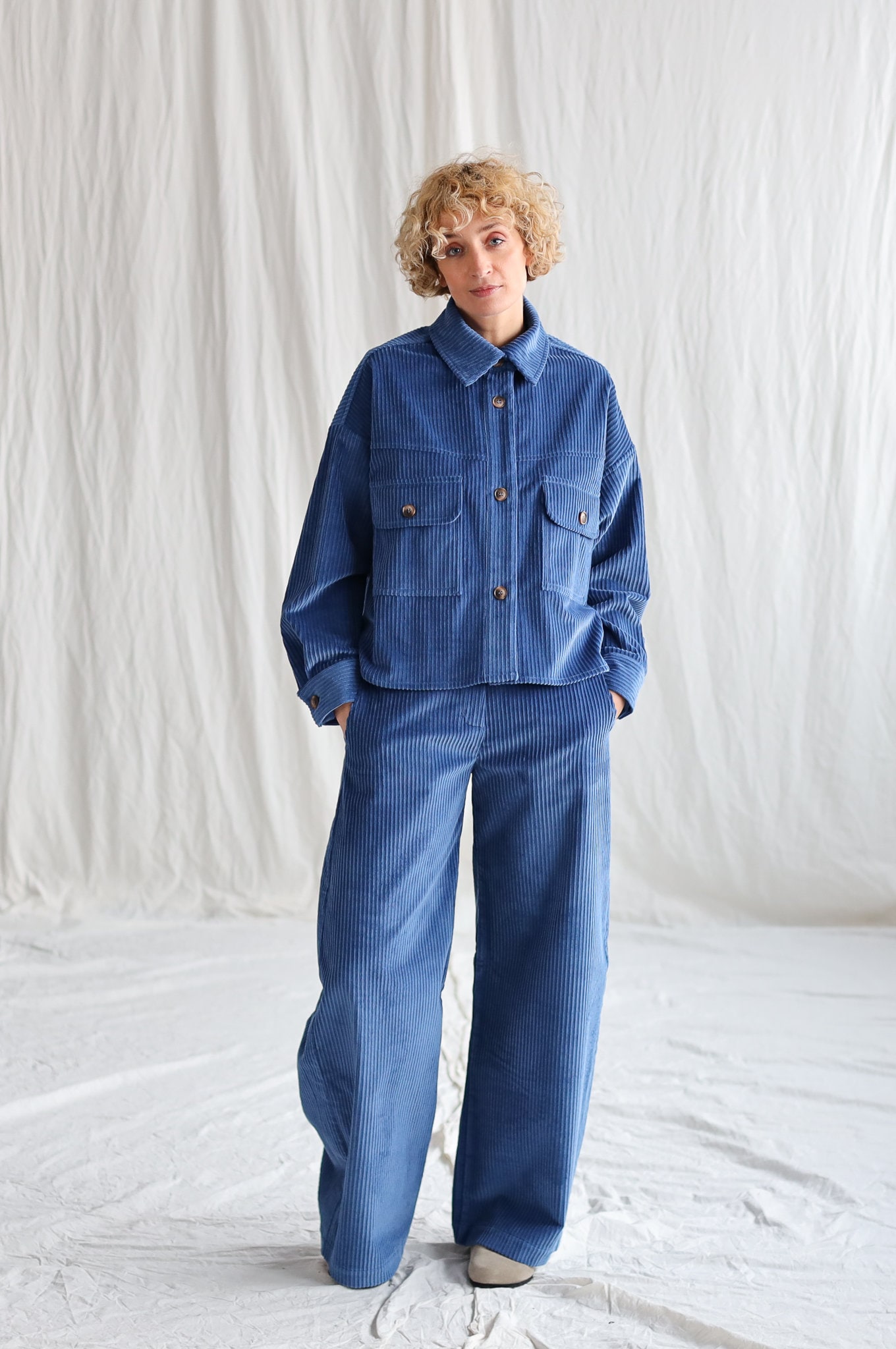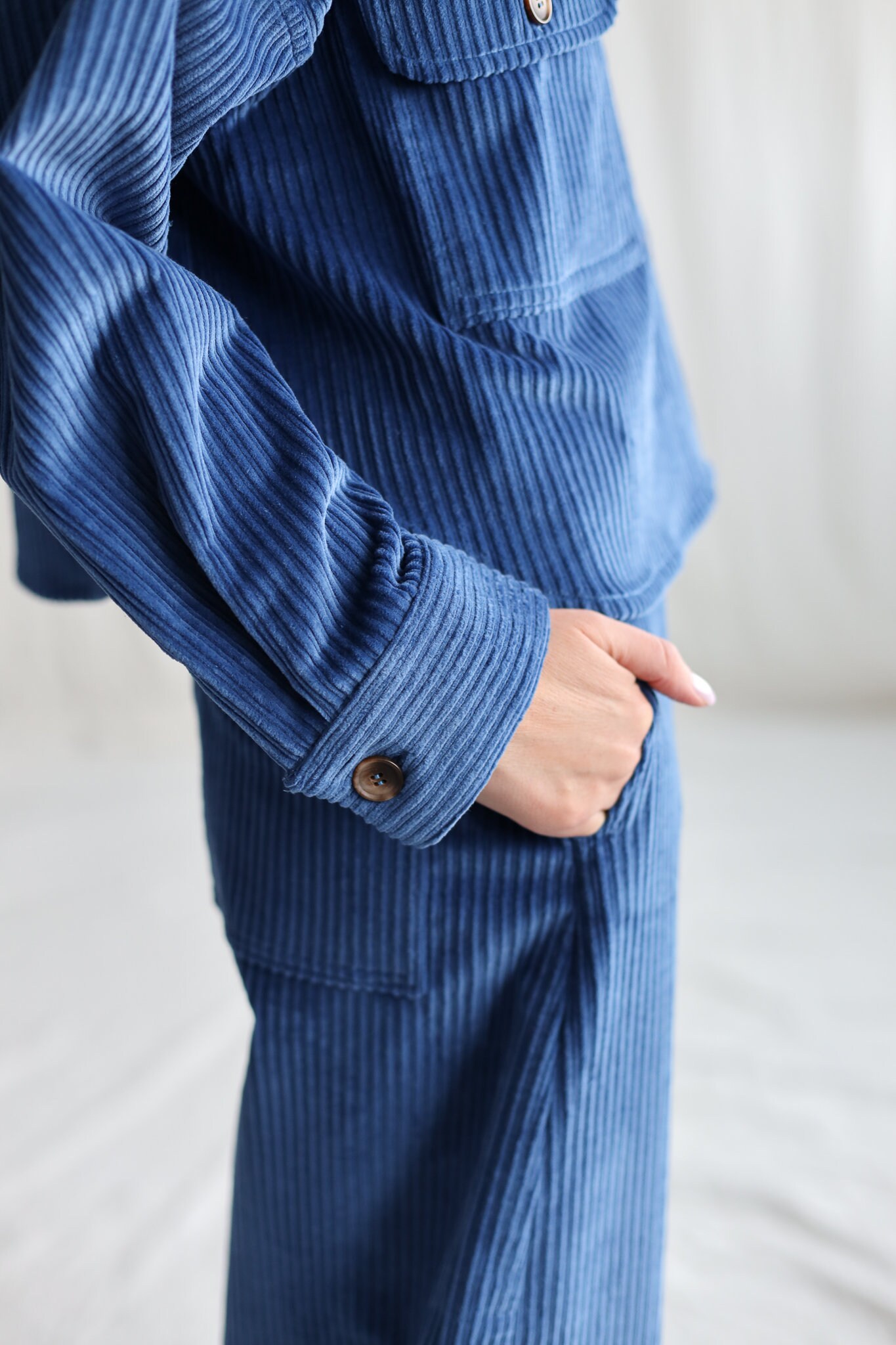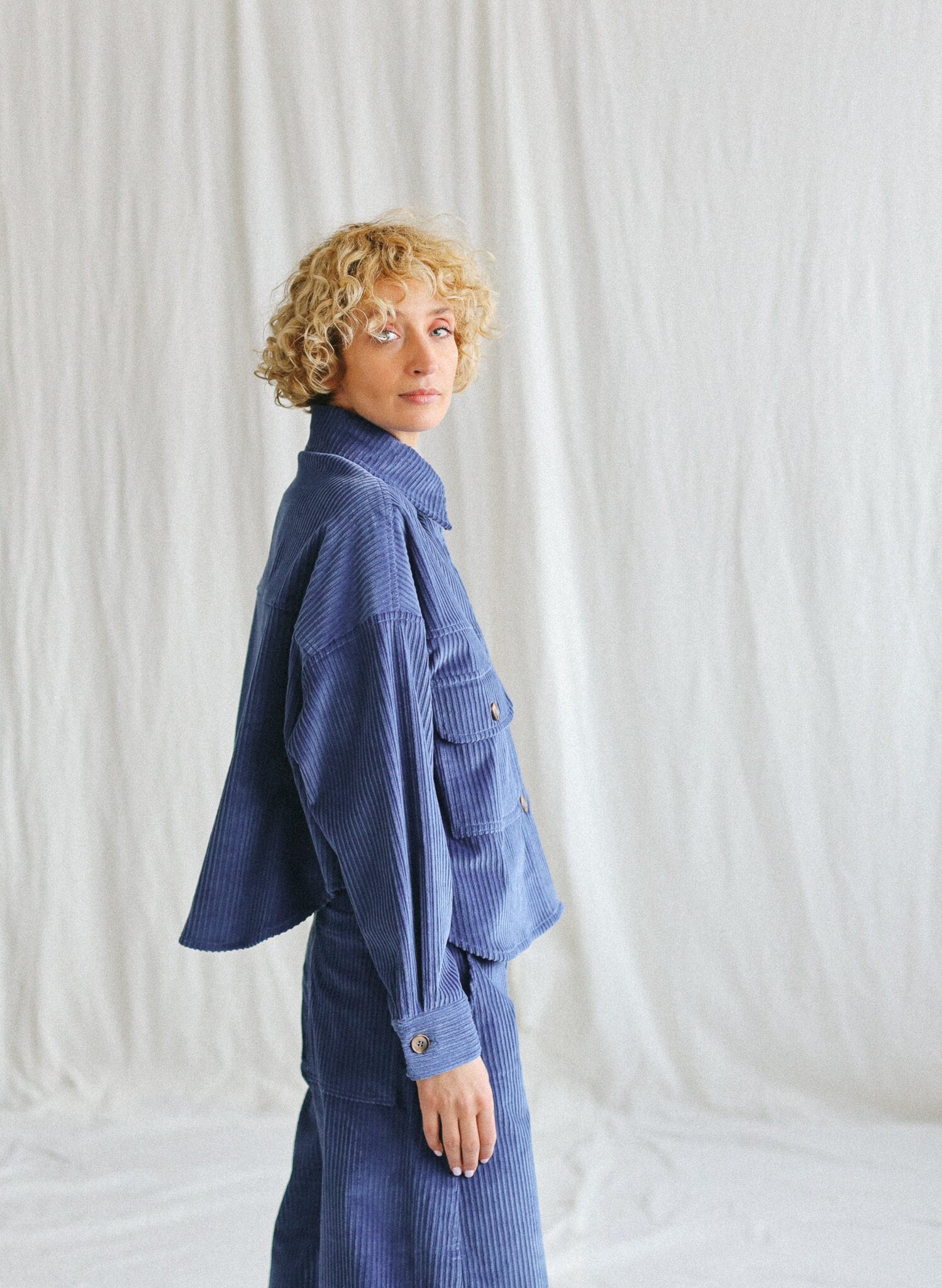 Made from a soft six-wale cord fabric. Denim jacket-inspired design, elegant and feminine look. Perfect for everyday and special occasions. Styling tip: pair it with our matching wide wale cord vintage style wide-leg culottes: