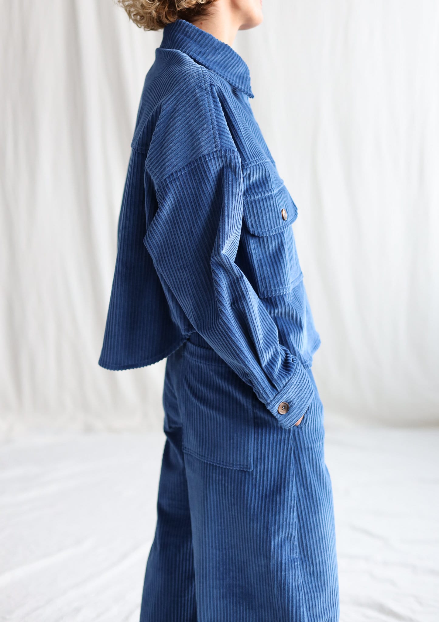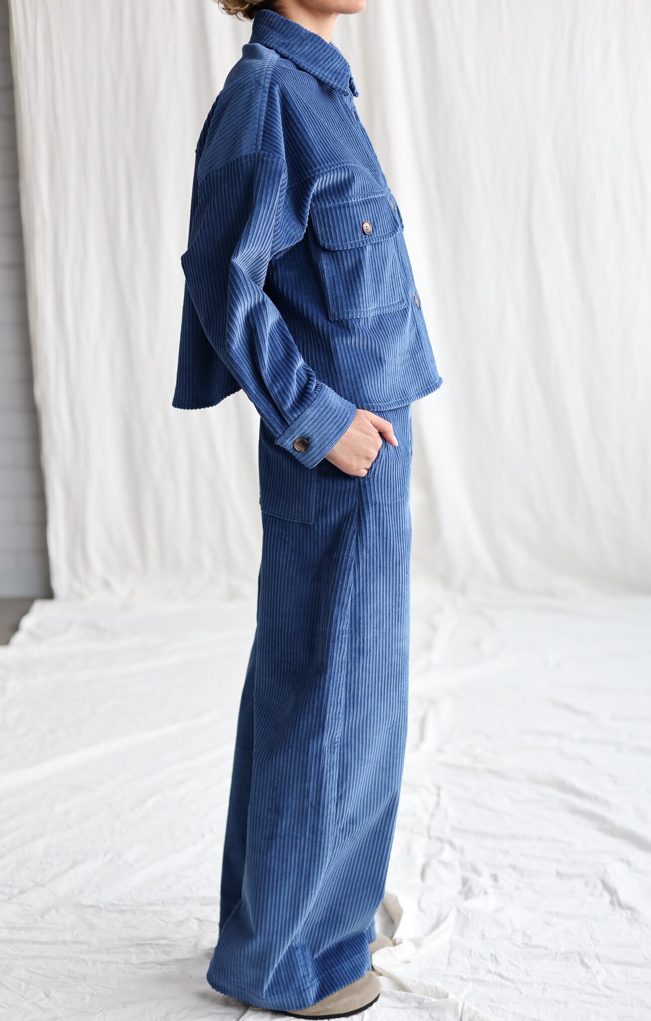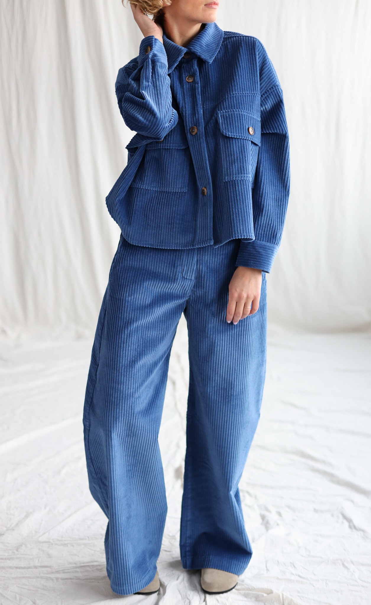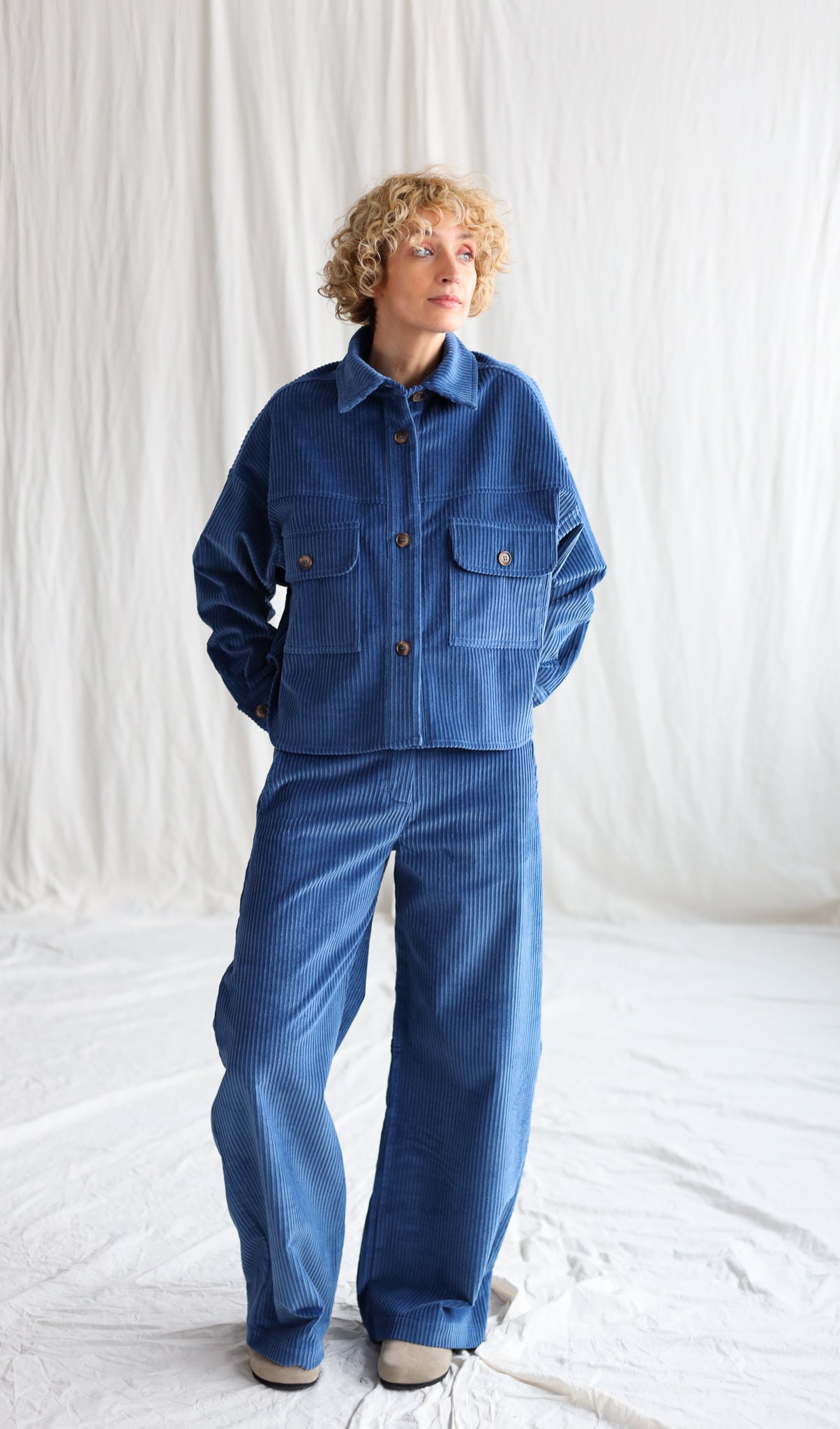 Made from a soft six-wale cord fabric. Denim jacket-inspired design, elegant and feminine look. Perfect for everyday and special occasions. Styling tip: pair it with our matching wide wale cord vintage style wide-leg culottes: